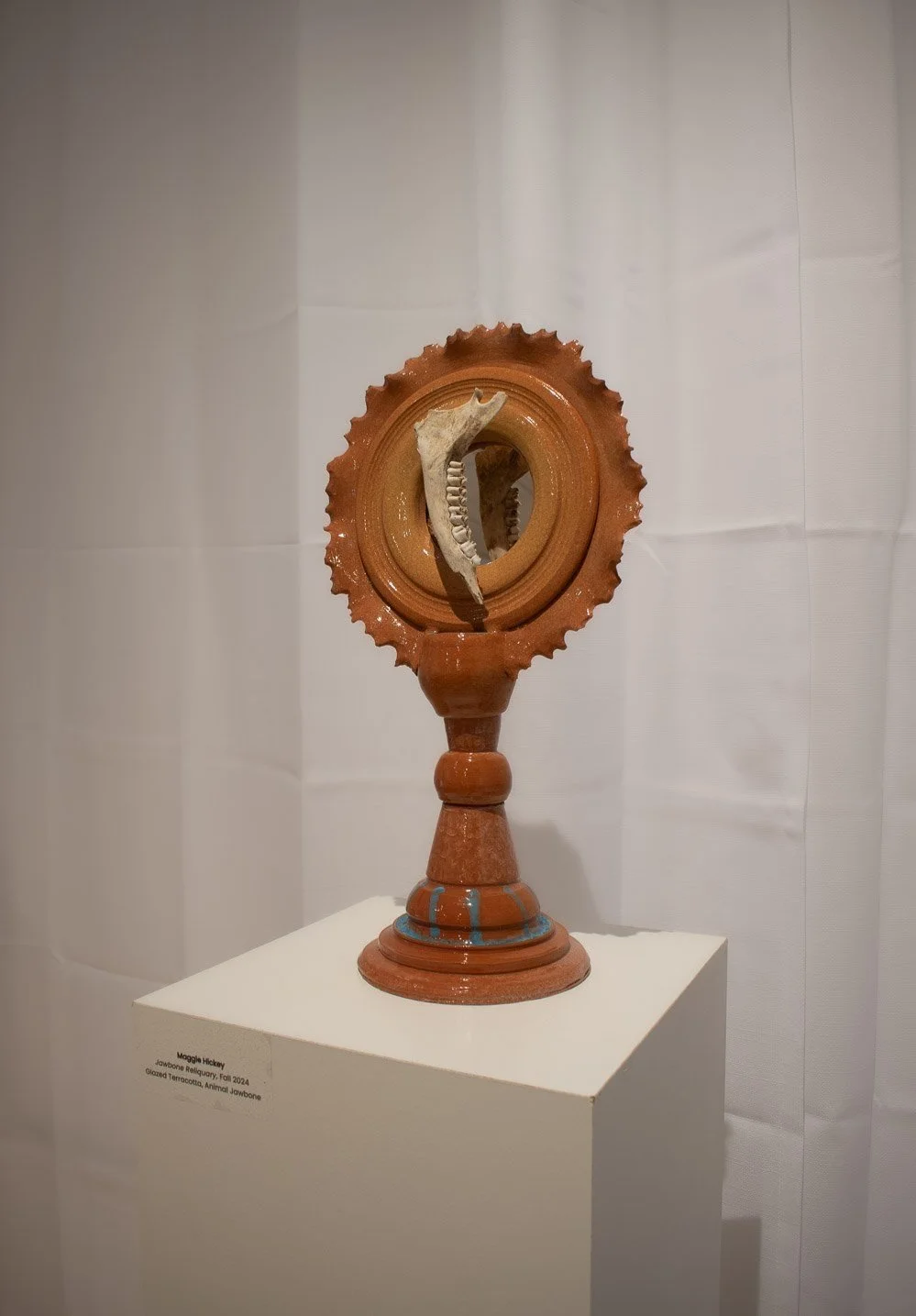 Jawbone Reliquary, Ceramic, Glaze, Animal Bone, Mirror, 2024