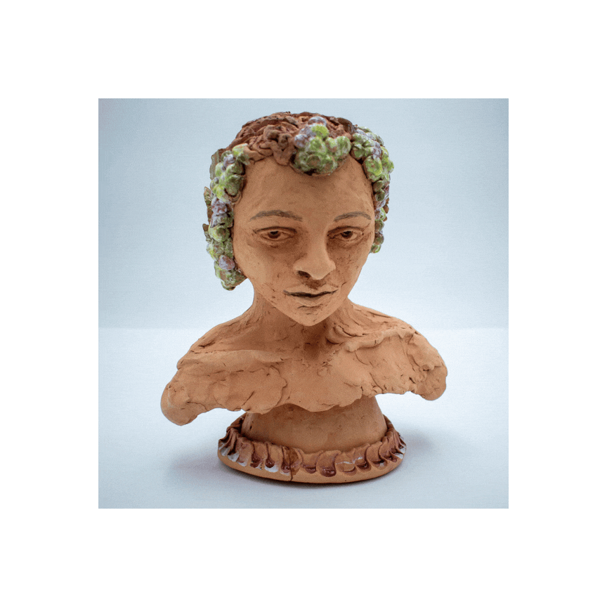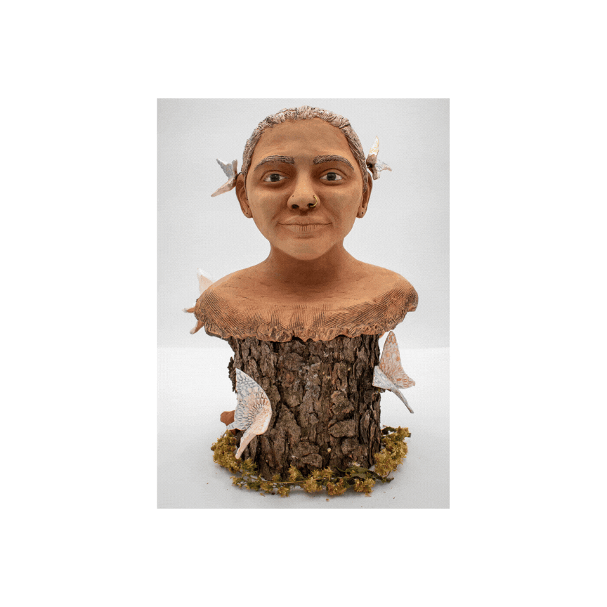 Self Portrait, Terracotta, Wire, Stump, Dried Flowers